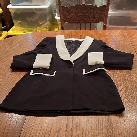 Akira Black Tuxedo Jacket With White Trim And Single Button Closure Size XL