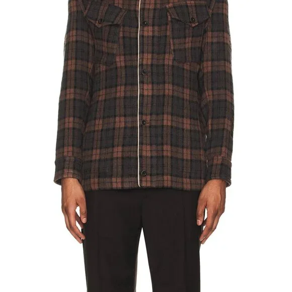 NWT Pierre-Louis Mascia Jacket in Multi NEW plaid wool flannel button down brown